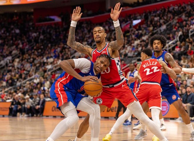 近期状态不俗的洛杉矶快船,迎来了他们东部三连客的最后一位对手——东部头名的底特律活塞。不过,汽车城这边一口气让了康宁汉姆、杜伦、哈里斯、斯图尔特,几乎是整整一套首发。因此,快船显然是有些轻敌了,赛前准备不足也好,临场发挥糟糕也罢,他们全场出现了整整21次失误,在45分16秒的时间里都处于落后,至多落后高达19分。但快船毕竟有莱昂纳德和哈登两位核心,加上祖巴茨、科林斯的全力发挥,还是有惊无险地逆转取胜。如此一来,近11场比赛中,快船赢下9场,北伐之路仍在延续,他们距离附加赛圈,也就是西部第十的灰熊,只剩一个胜场的差距了。