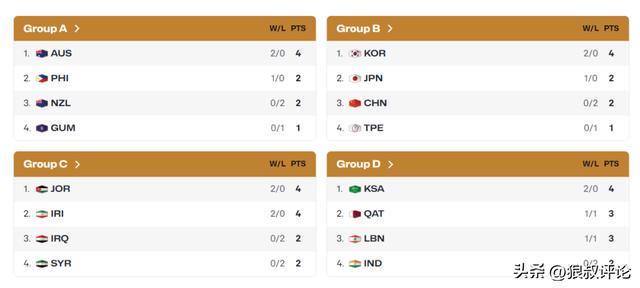 目前中国男篮所在小组排名,韩国第一,日本第二,中国男篮2连败(-18分)排在小组第三的位置,中国台北队不敌日本已经-33分。