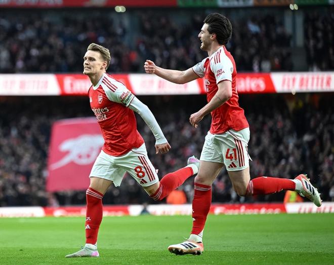第3分钟,萨卡右路持球一对一面对后卫防守一个加速摆脱趟入禁区小角度低射,费布鲁亨及时封住近角将球挡出;第14分钟,费布鲁亨门球过于随意开出被断,赖斯摆渡到前场,萨卡立马分向中路,厄德高禁区前沿手起刀落一脚劲射命中近角,1:0!这是厄德高本赛季的第一粒进球,此前他因为低迷的状态和进球荒遭到球迷诟病,不过厄德高本赛季每90分钟创造出2.5次运动战机会,在本赛季英超出场500分钟以上的球员中仅次于曼城攻击手多库(3.4次)和谢尔基(3.2次)。
